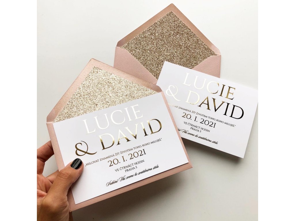Obálka C6 s glitrovým metalickým vkladem ve zlaté barvě.