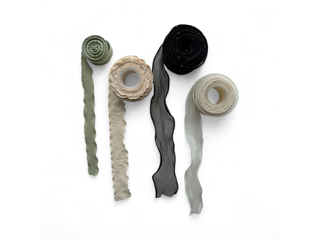 Luxusní černá šifonová stuha s jemnými třpytkami přináší eleganci a šarm do každého projektu
