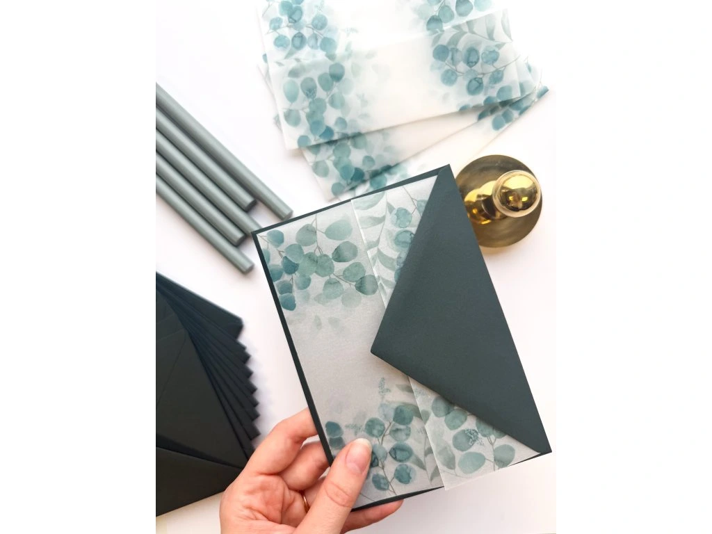 Transparentní přebal s elegantním Eukalyptovým potiskem skvěle doplní vaše tiskoviny!