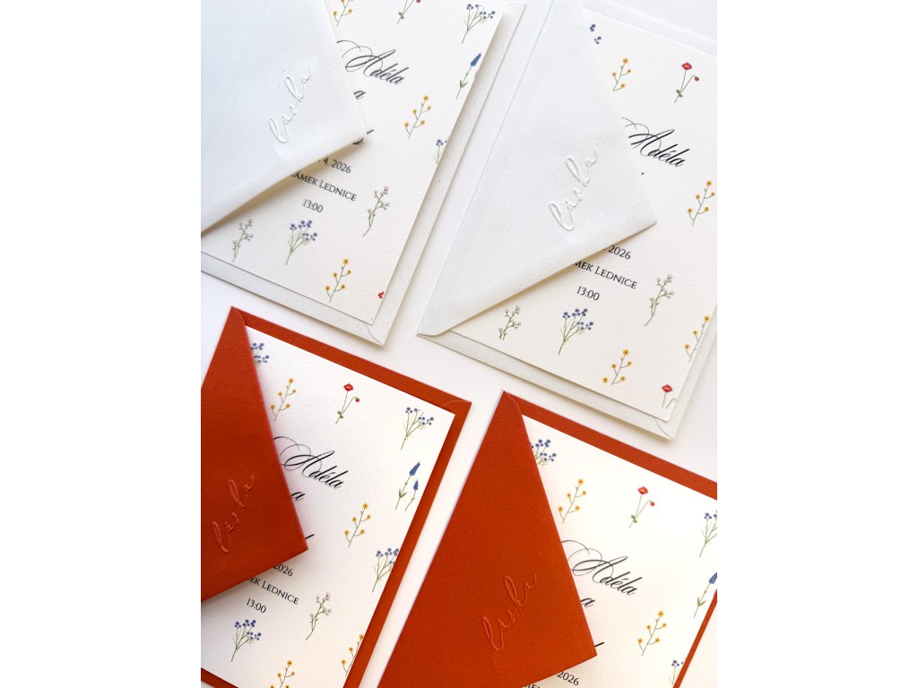 Všechny texty svatebních tiskovin a jejich umístění lze upravit dle vašeho přání, grafické přípravy jsou zahrnuty v ceně svatebních tiskovin.