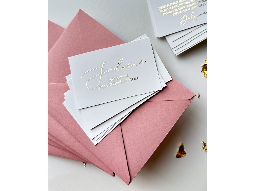 Texty oznámení tiskneme v zrcadlové barvě písma zlatá, rose gold a stříbrná, ale také v elegantní černé barvě.
