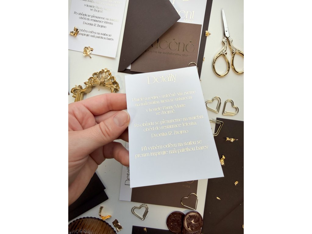 Texty oznámení tiskneme v zrcadlové barvě písma zlatá.